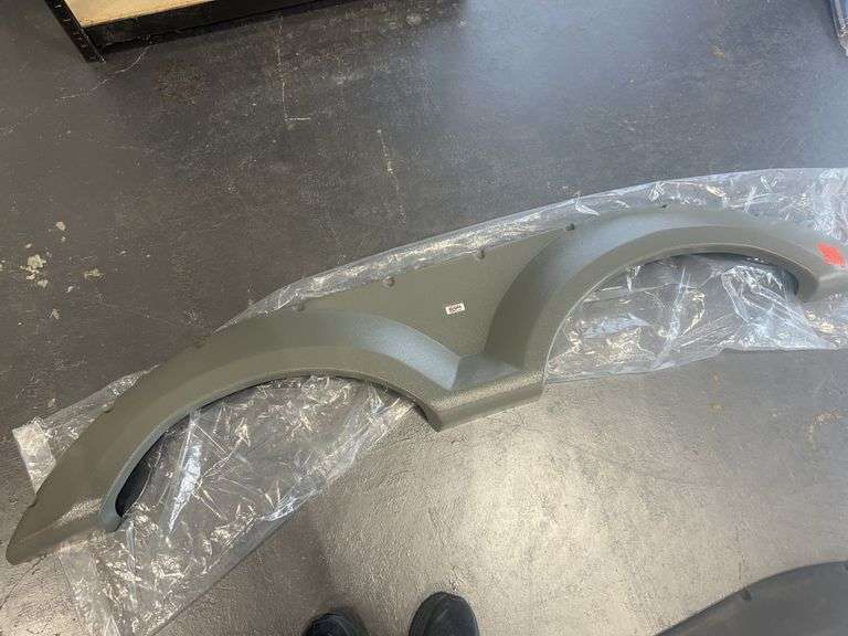 Lot contains double axle wheel fairing. Gray finish, dimensions are 70 inches long by 14 inches tall.