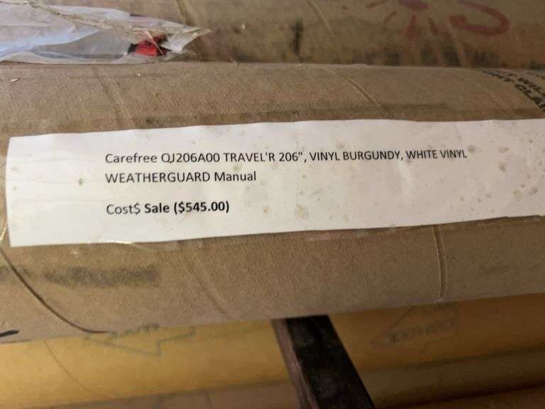 Carefree model QJ206A00 Travel R 206”, Vinyl Burgundy, White vinyl Weatherguard manual awning material.