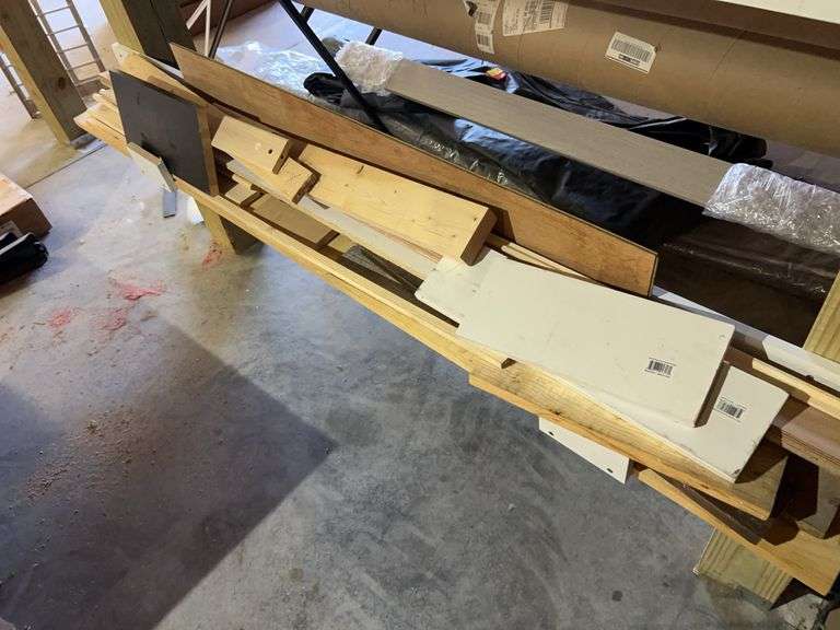 Numerous pieces of scrap wood. 2x4, trim boards, and 1x4 pieces.