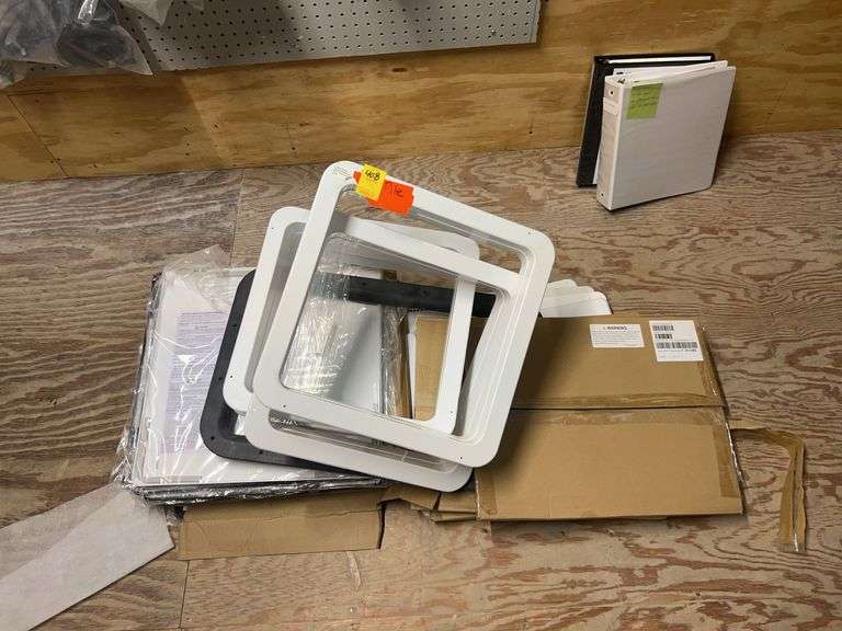 Lot includes an assortment of skylight, dropping in, water heater doors in an assortment of colors.