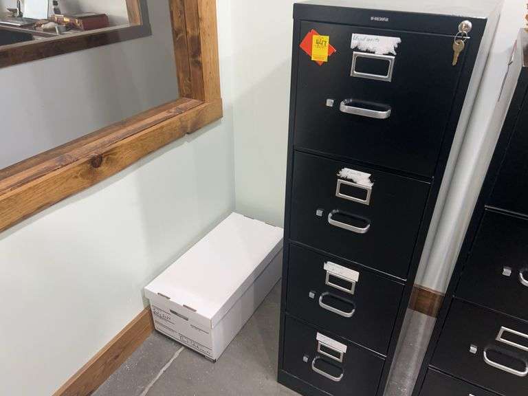 Lock contains HON brand filing cabinet. Cabinet measures 52 inches tall by 15 inches wide by 25 inches deep. Filing cabinet will come with keys.
