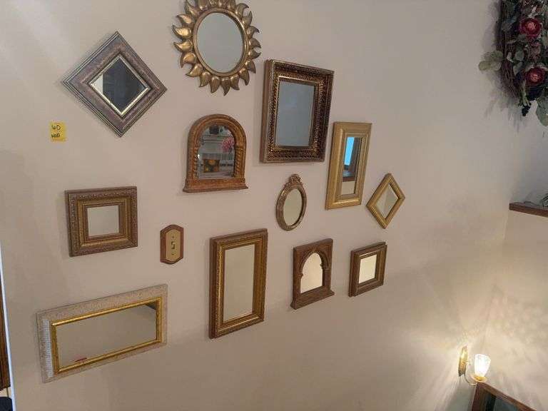 Lot includes an assortment of small hanging mirrors, various sizes of frames and finishes.