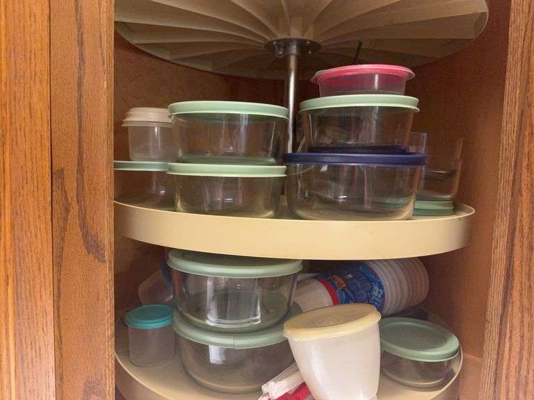 Lot contains set of Martha Stewart glass food containers, plastic storage containers, various sizes.