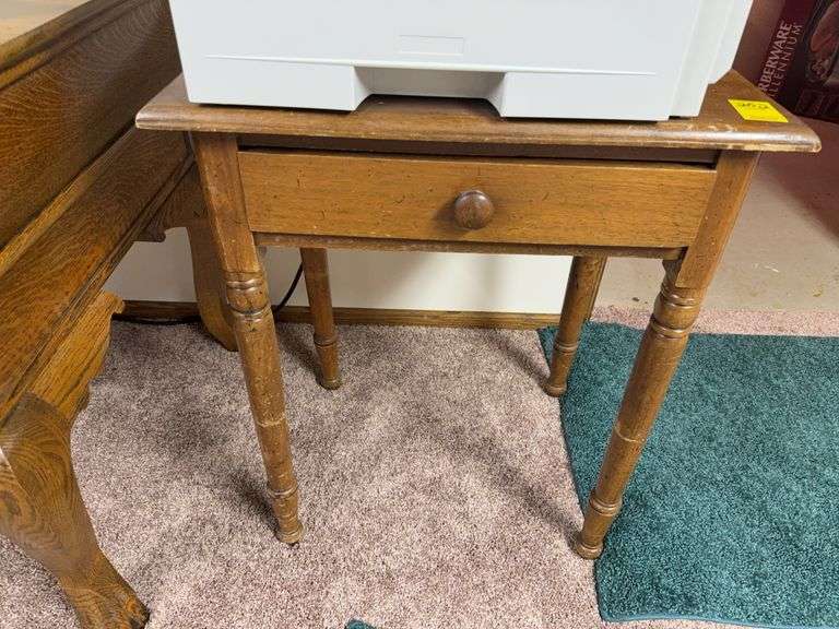 Law includes vintage wooden table measuring 2 foot 4 1/2 inches tall by 1‘11“ long by 1 foot 4 1/2 inches wide.