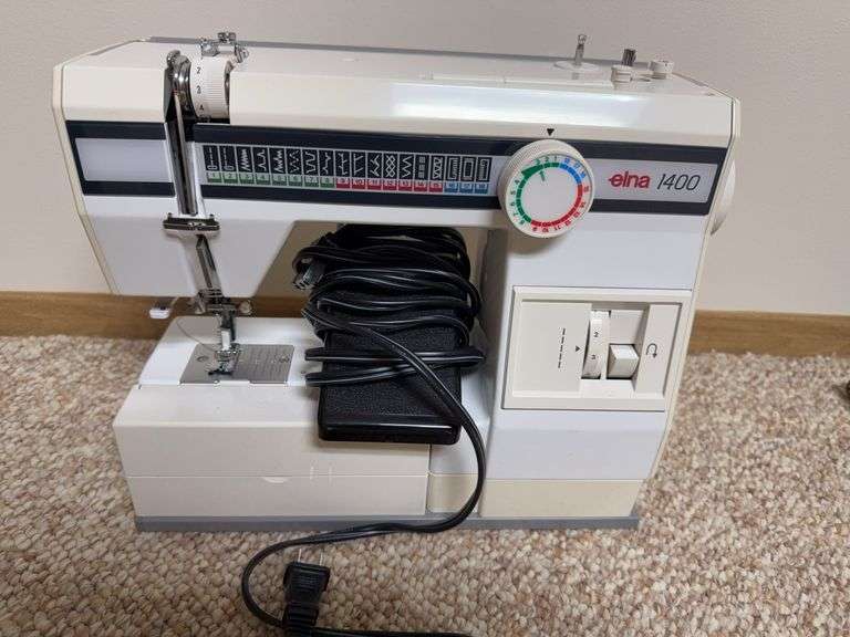 Lot includes household sewing machine Elna model 1400. Some machine is in case, working condition unknown.