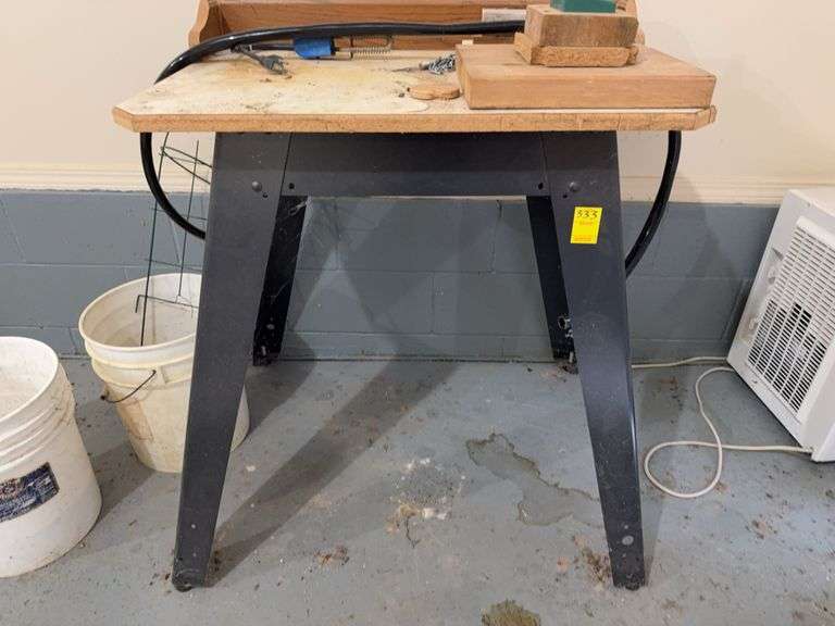 What contains a homemade workbench measuring 31 inches wide by 20 1/2 inches deep by 34 inches tall.