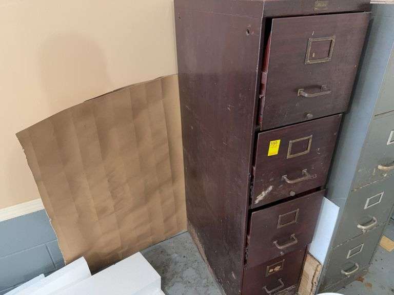 Four drawer filing cabinet measuring 14“ x 25“ x 52 1/2“ tall.