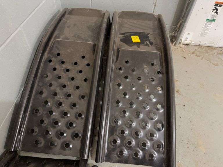 Lot contains a pair of steel car ramps. Ramps are Peterson/true cut automotive brand.