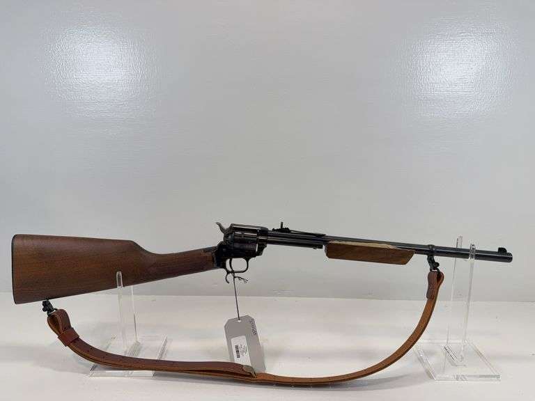 Heritage rough rider 22 revolver rifle. Wooden stock with blued barrel. 16 inch barrel. 32 inches overall length. Serial number 3PH307682.