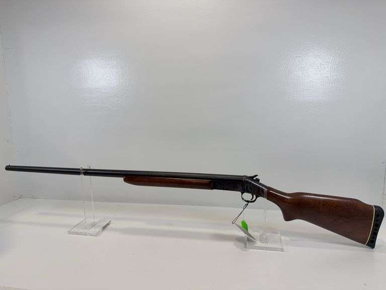 Harrington and Richardson sportsman LR176 chambered in 20 gauge. Brake action single shot shotgun. 32 1/4 inch barrel. Wooden stock with blued barrel. serial number AS262568.