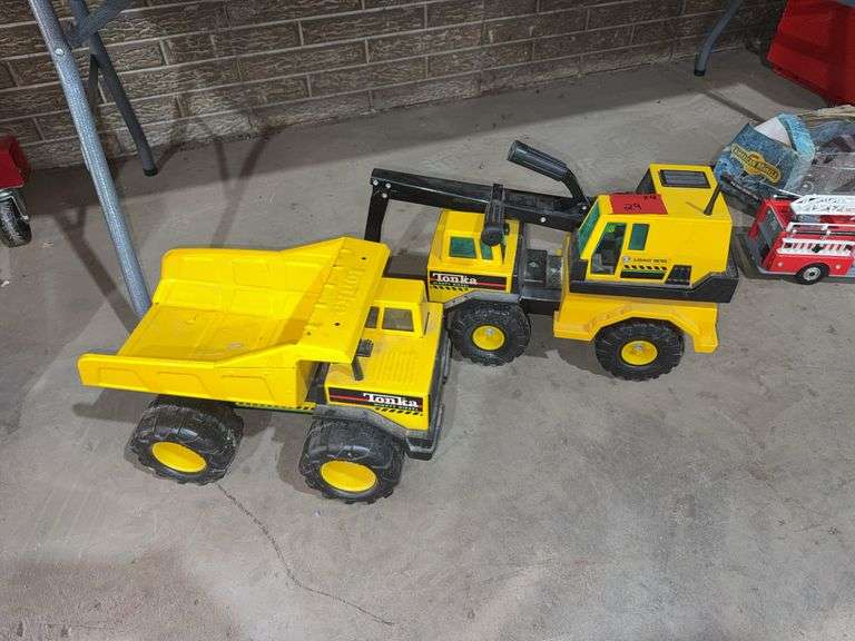 Lot includes tonka dump truck, load 1210 truck, fire truck & classic toy car.