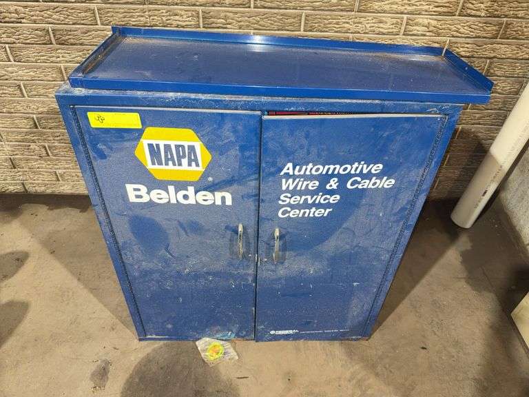 Lot includes Napa wall cabinet measuring 2‘6“ tall by 2 foot 2 1/2 inches long by 10 inches wide. Lot also includes contents of cabinet.