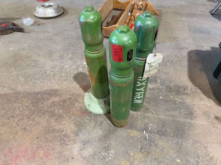 Lot contains 3 metal medical oxygen tanks.