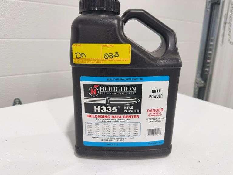 Lot contains Hodgdon H335 rifle powder, unopened container, 8lbs.