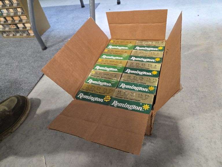 Lot contains 10 total boxes of Mixed Remington 12 gauge 2¾" ammunition. Five boxes of Remington 12 gauge 2¾" Premier STS Light Target Load. Four boxes of Remington 12 gauge 2¾" Premier Nitro Sporting Clays, and one box Remington 12 gauge 2¾" Premier STS Low Recoil.
