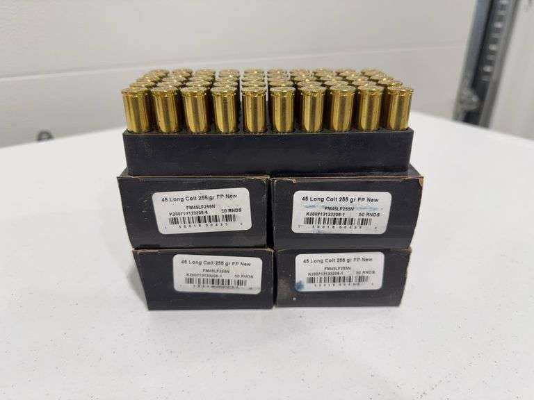 Lot contains Freedom munitions 45 Long Colt, 255 grain FP. 250 rounds in original packaging.
