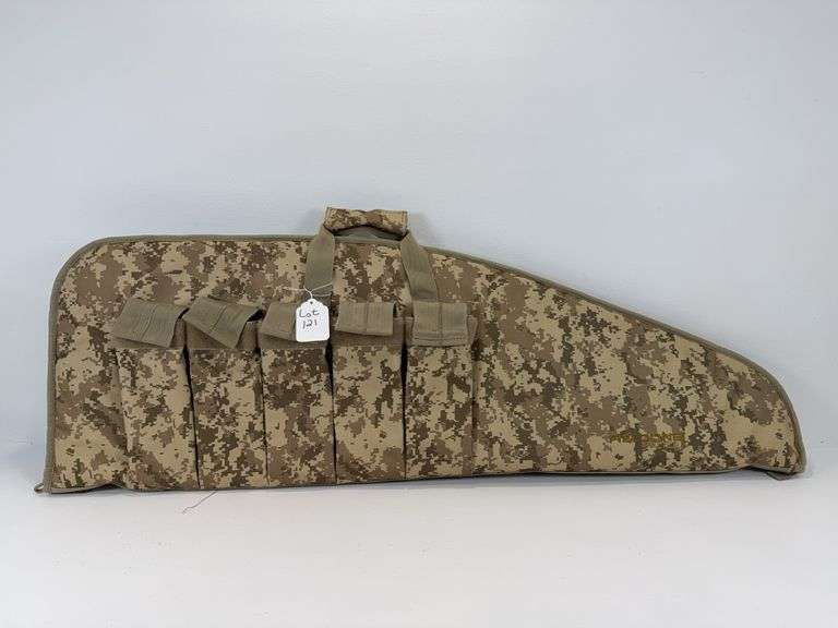 Fieldline Tactical soft rifle cases with 5 external magazine pouches and shoulder strap. Case measures 41” long by 14” tall.