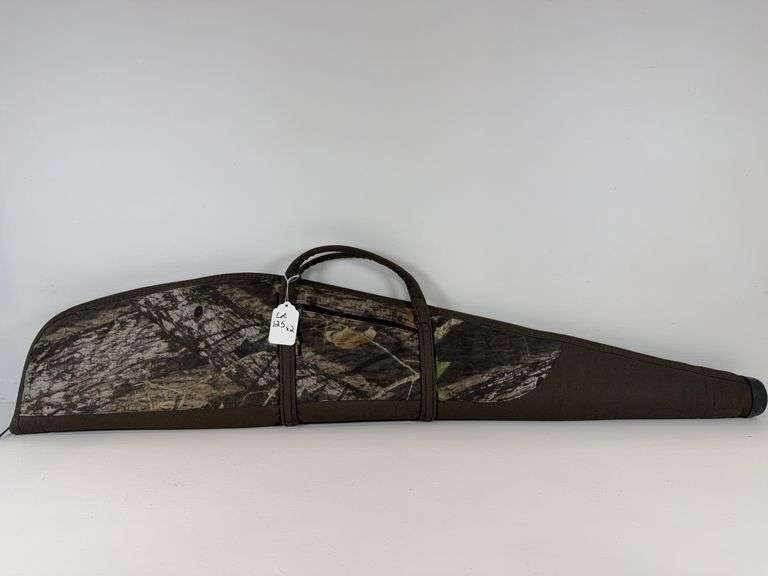 Two Allen soft gun cases. One Mossy Oak pattern case with outer zipper pocket, case measures 48” by 10”. One Realtree pattern case with outer zipper pocket, case measures 49” by 10”.