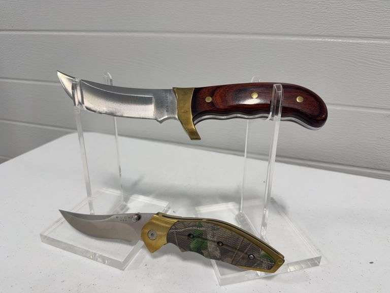 Lot contains 2 Buck knives. First is a Buck Kalinga with sheath & box, in excellent condition. Second is a Buck 419 flip blade with sheath & box, in excellent condition.