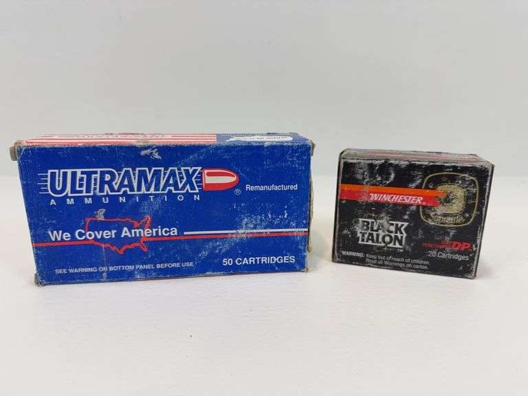 Lot contains 50 rounds of Ultramax 10mm 180 grain FMJ remanufactued ammunition and 20 rounds of Winchester Black Talon200 grain SXT ammunition.